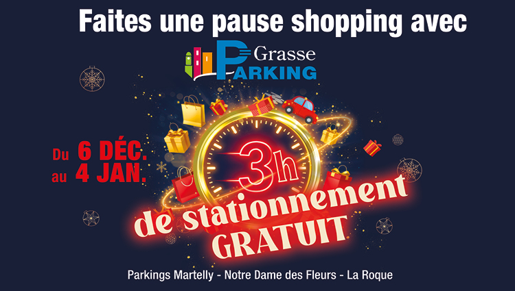 Grasse Parking vous fait votre premier cadeau : 3H de stationnement gratuites du 6 décembre 2025 au 4 janvier 2026. Une bonne nouvelle pour les fêtes 🎁Profiter sereinement des animations et de vos achats de Noël. Flânez, dégustez, partagez… et profitez du centre-ville sans vous presser ! Se garer, apprécier et apprécier la magie de Noël à Grasse.