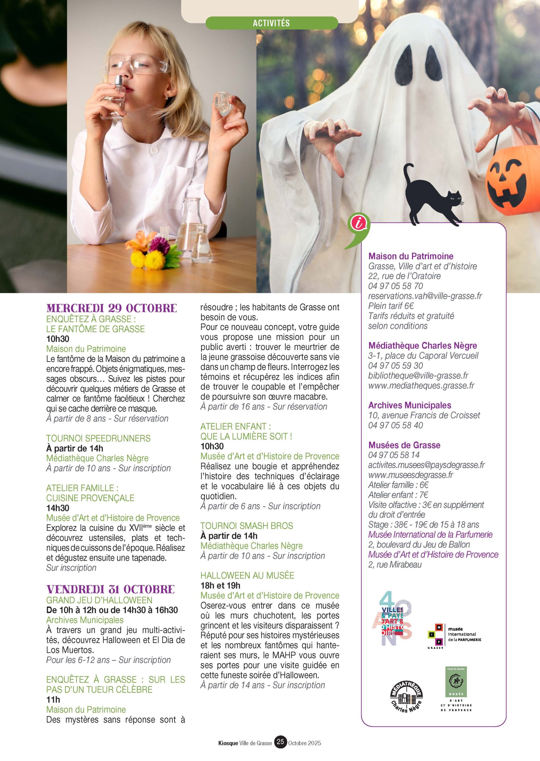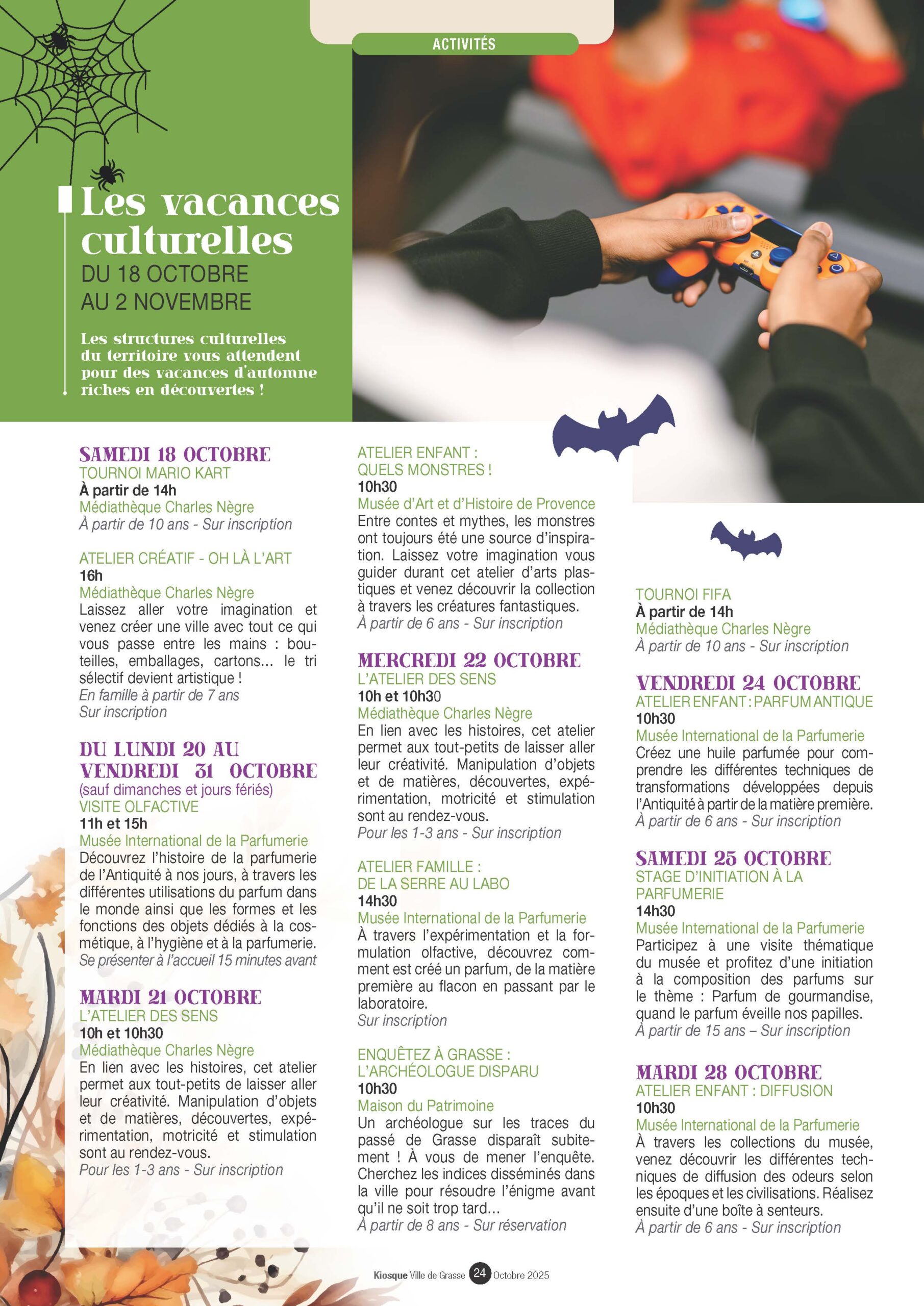 Les structures culturelles de Grasse accueillent petits et grands pendant les vacances scolaires pour des activités frissonnantes et amusantes ! Découvrez le programme.
