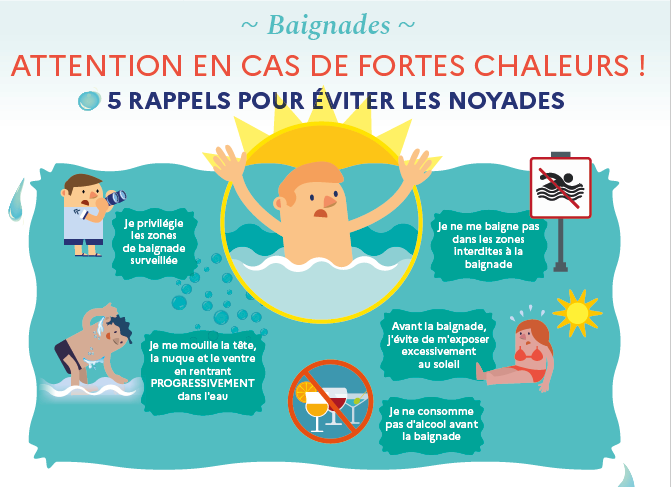 • En cas de manifestation, des mesures sont recommandées : ajout de barnum, déplacer l’évènement à l’ombre, fournir de l’eau fraiche gratuitement au public, porter un chapeau /une casquette